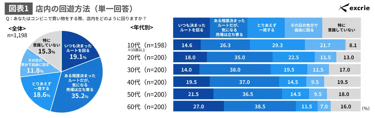 コンビニの店内回遊、10代は他年代と比べて「とりあえず一周」「その日の気分で自由に」 |