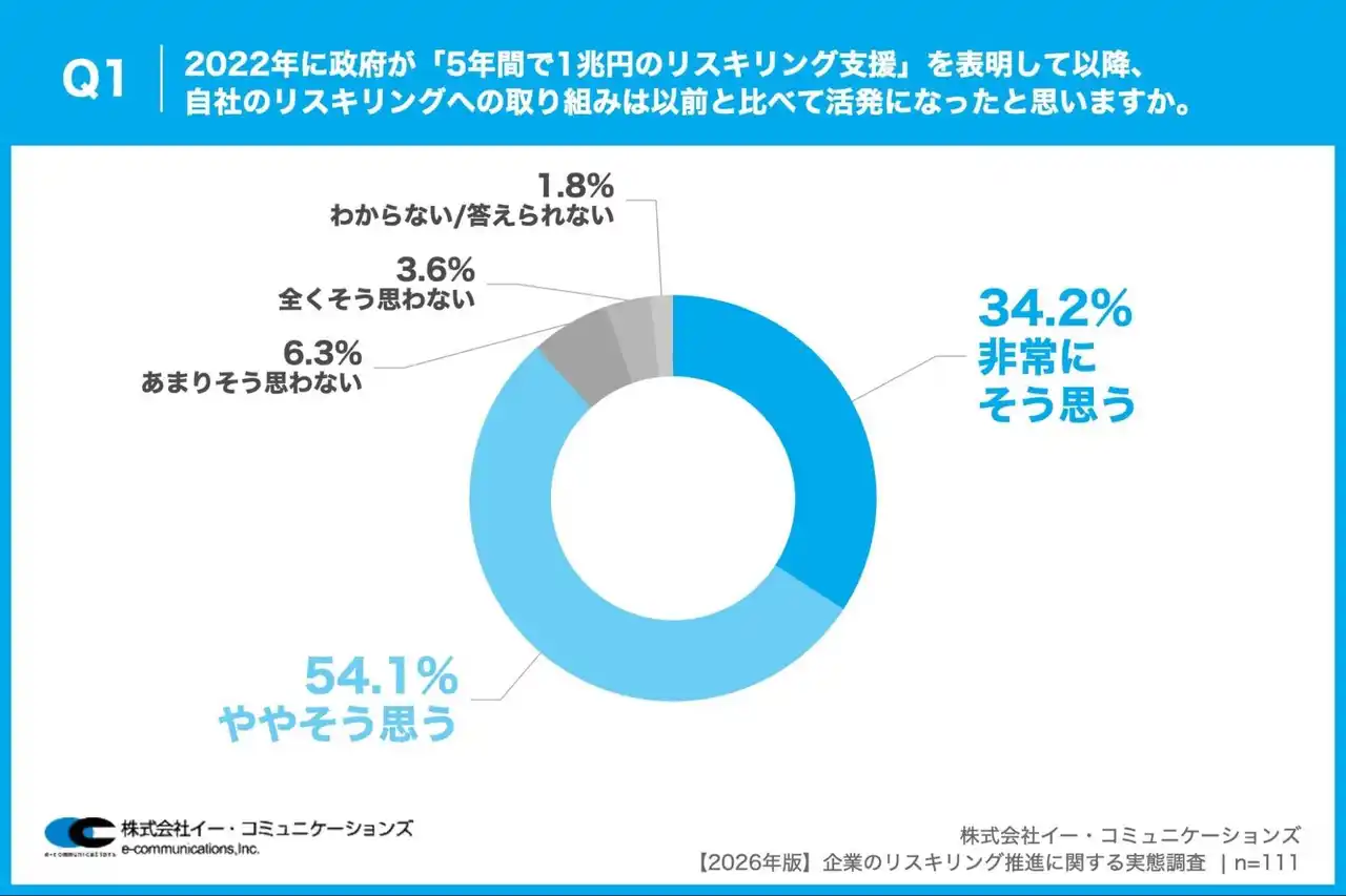 株式会社イー・コミュニケーションズ(本社:東京都港区、代表取締役:佐藤信也)は、従業員300名以上の企業の人事・人材開発担当者111名を対象に、【2026年版】企業のリスキリング推進に関する実態調査を実施しましたので、お知らせいたします。