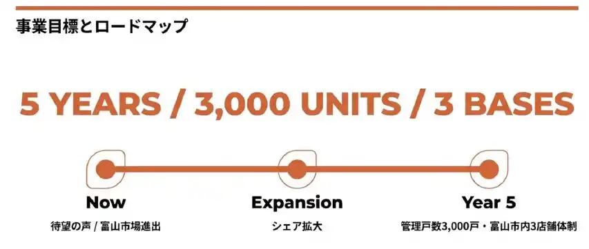 | ■ 今後の目標:富山エリアで5年以内に3拠点・管理戸数3,000戸へ | ||||||||||||