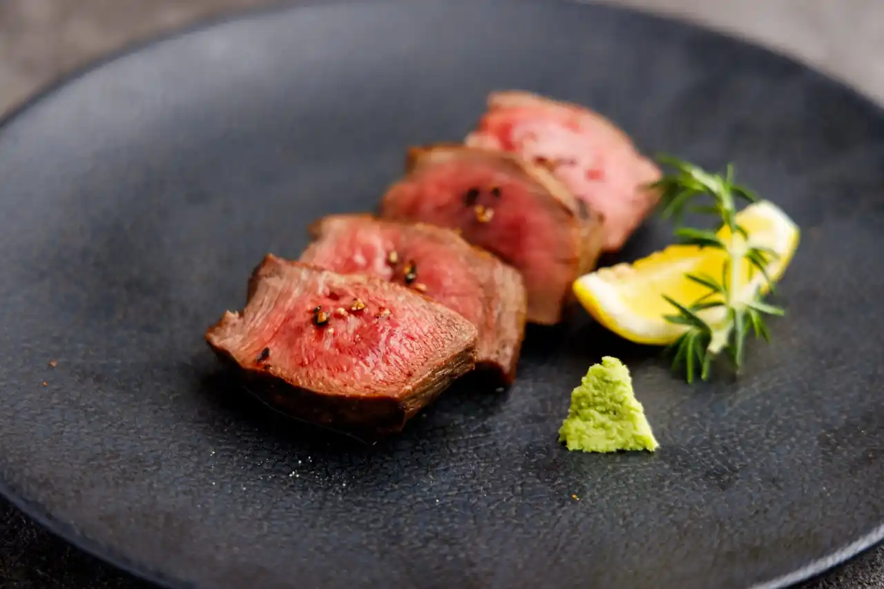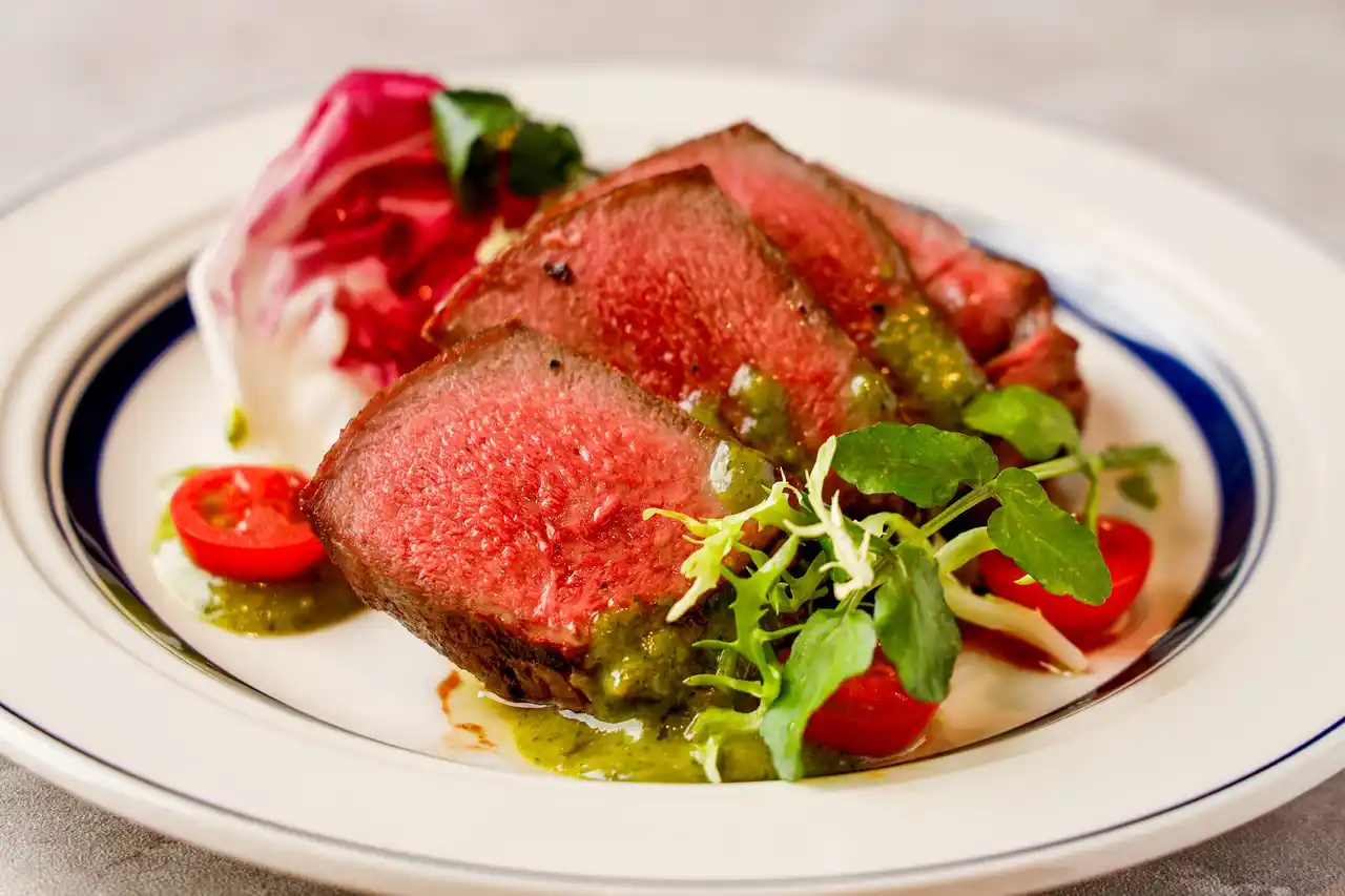 | 表面は香ばしく焼き上げ、中はしっとりとした絶妙なミディアムレア。ナイフを入れた瞬間に感じる弾力と、噛みしめるたびに広がる濃厚な旨みが、牛タンのポテンシャルを余すことなく引き出します。 | |||||||||