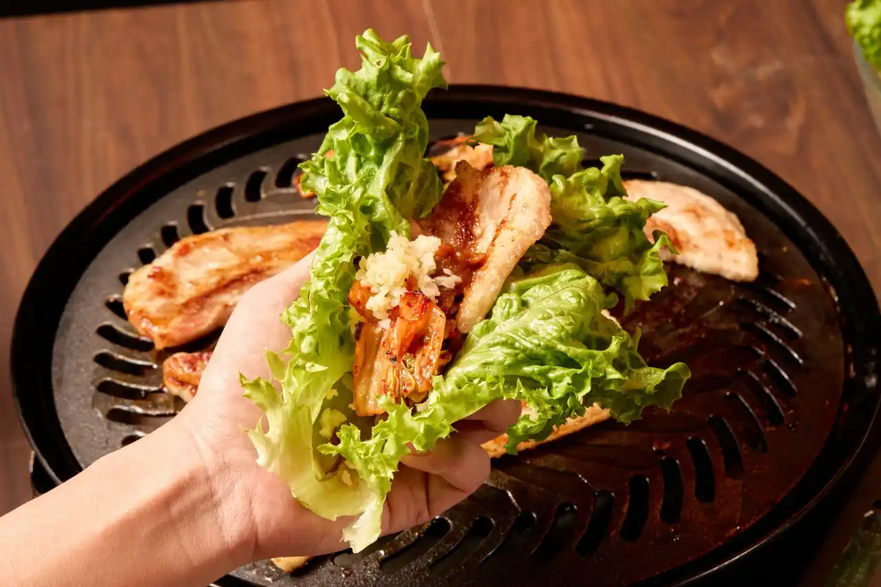 ・焼き野菜、包み野菜・特製辛味噌、ニンニク |