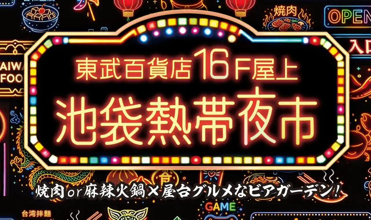 東武グループの食文化開拓カンパニーである東武食品サービス株式会社(東京都墨田区/取締役社長:酒井 隆充)は、期間営業にて「東武百貨店16F屋上 池袋熱帯夜市」~焼肉or麻辣火鍋 屋台グルメなビアガーデン!~を、2026年4月24日(金)にオープンいたします。 |