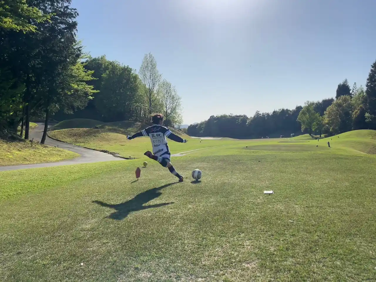 サッカー(フットボール)とゴルフ、この異なるスポーツを融合した新しいスポーツがフットゴルフです。サッカーボールの5号球を使い、ゴルフコースで9ホール、または18ホールをラウンド。「サッカーボールを蹴ってゴルフをする」ことをイメージすると分かり易いでしょう。 |
