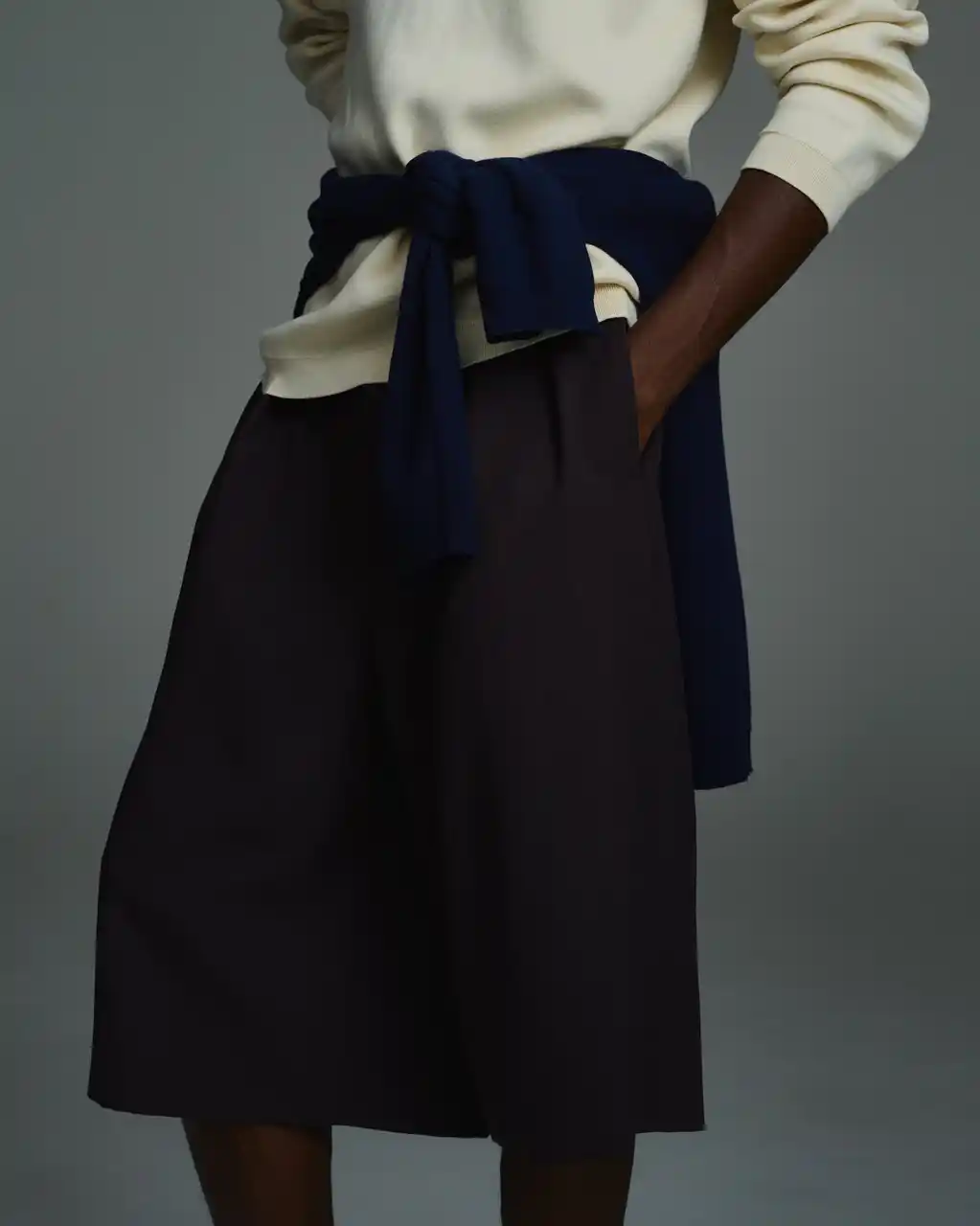 | ドライタッチでウールライクな表情を持つポリエステルツイル素材を採用。軽やかさがありながらも適度なハリがあり、2プリーツによる生地分量のあるシルエットと好相性です。 膝下にかかる6分丈で、トラウザーズのようなバランスに仕上げたショーツ。ショーツ特有のラフさを抑え、どこか品のある佇まいが魅力です。短めの丈が苦手な方にも取り入れやすく、スタイリングの幅を広げてくれる一本です。 | |||||||||||||||