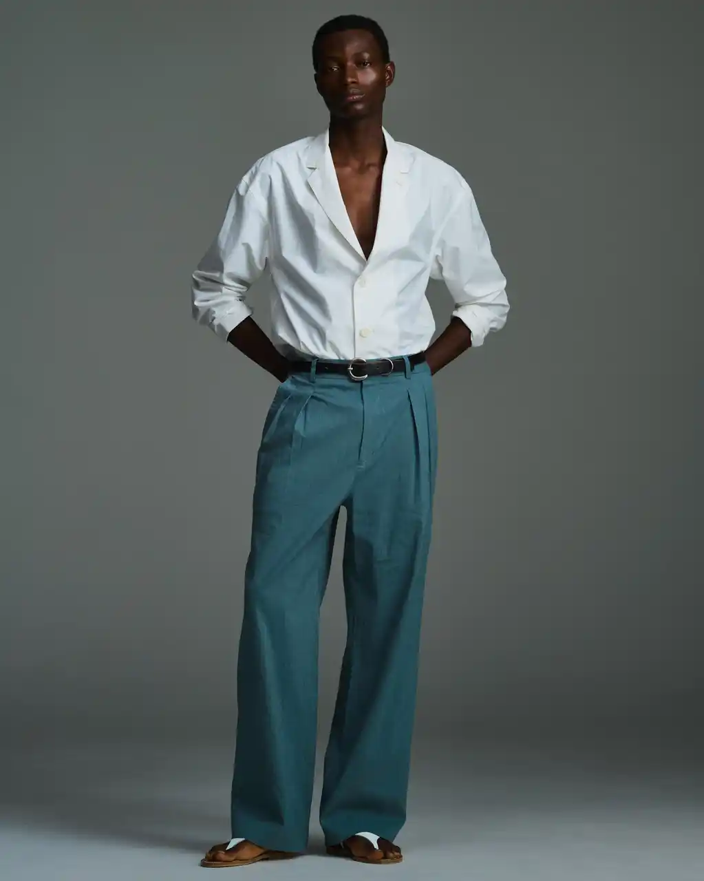 | レーヨン、リネン、コットン、ポリウレタンといった天然素材と化繊をミックスした生地を使用した、クラシックな2プリーツパンツ。異なる糸が織りなすことで、表情に奥行きが生まれています。 リネン由来のさらっとしたドライなタッチに加え、化繊ならではのバルキーなハリ感も感じられるのが特徴。軽やかさと構築的なフォルムが共存した仕上がりです。 シルエットは、2プリーツによって腰まわりにゆとりを持たせたリラクシングな設計。それでいて、ワイドに振りすぎない綺麗なストレートラインに整えることで、だらしなく見えないバランスに。ラフさと品の良さを両立した一本です。 | |||||||||||||||