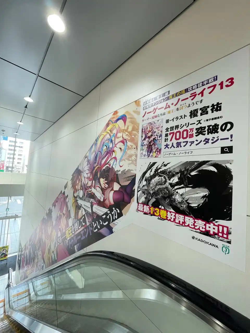 本日より、アニメイト池袋本店内のエスカレーターにて『ノーゲーム・ノーライフ13』広告を掲出しています。4月24日(金) ~ 5月7日(木)の二週間限定となりますので、この機会にぜひ足をお運びください! |
