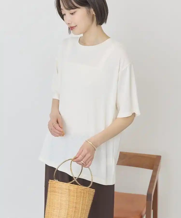 【遮熱・UVカット】配色ステッチルーズTシャツ |