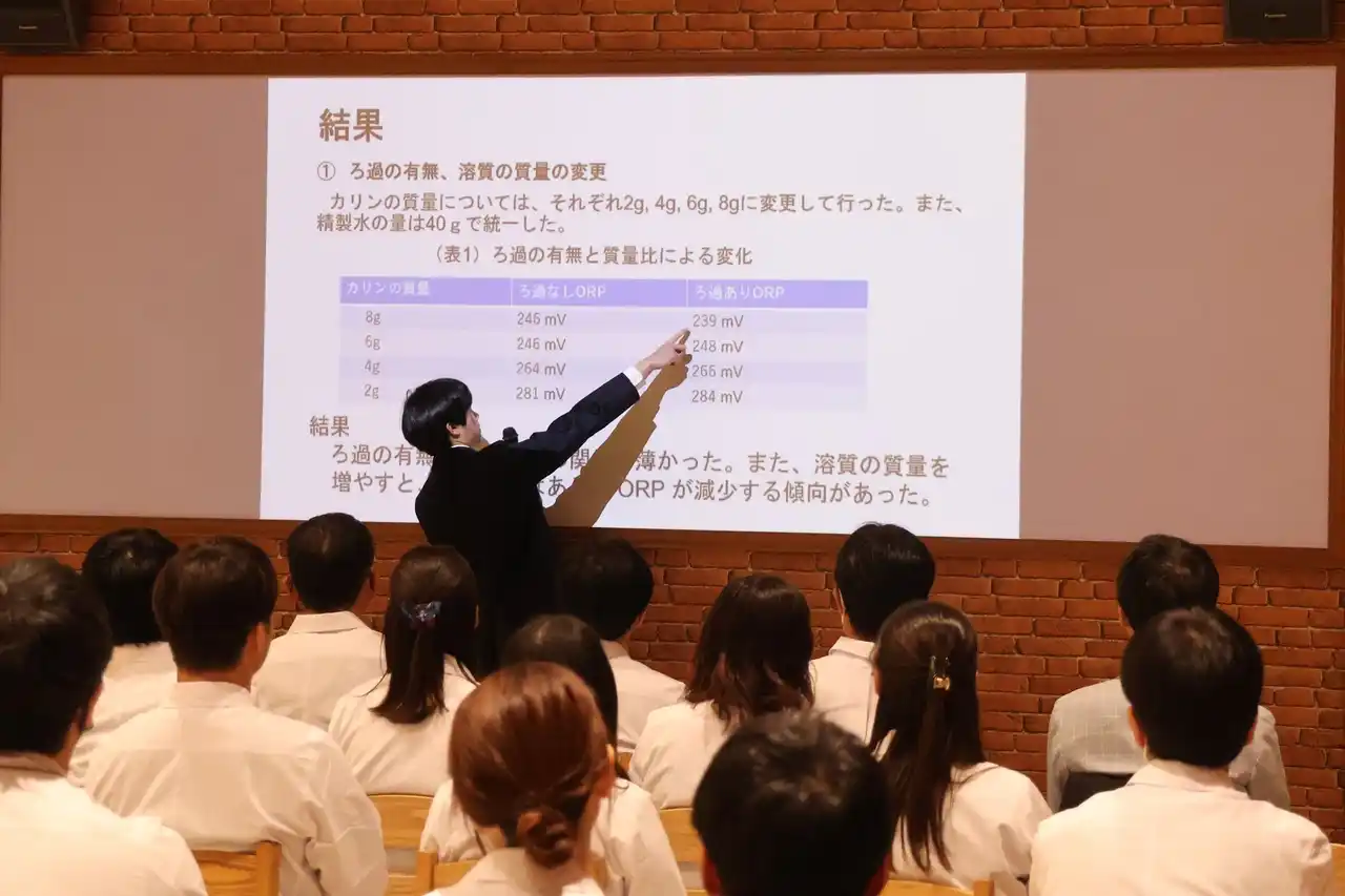 発表会では、ロッテの研究員が半年間伴走した中高生3チームが、独自の視点で「カリン」の可能性を発表しました。研究内容は多岐にわたり、地元山形の名産果物の酸化を防ぐ「還元剤」としての力を検証した発表や養殖魚の餌に活用して食味向上に挑んだ事例、タマネギの成分と組み合わせて環境に優しい「日焼け止め」を試作した研究など、斬新な成果が次々と披露されました。 |