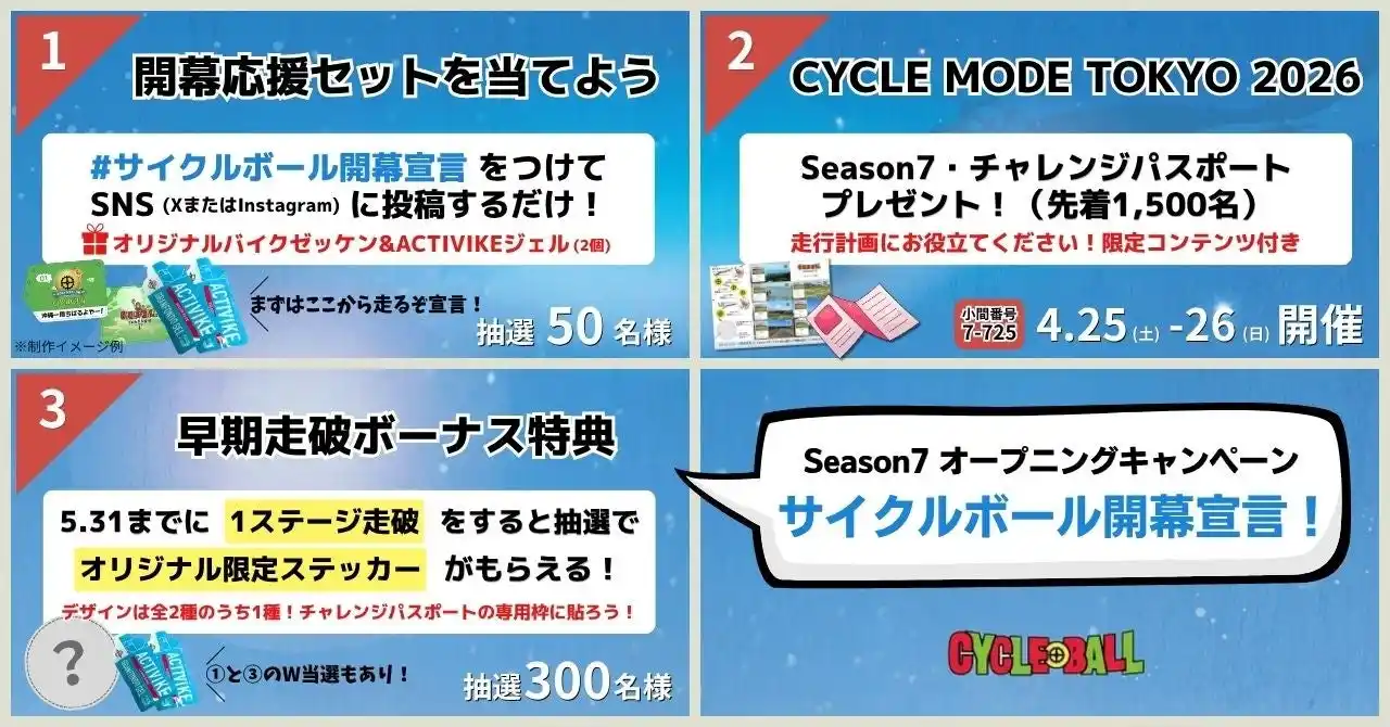 Season7の開幕を記念し、「サイクルボール開幕宣言!」キャンペーン(2026年4月17日~5月31日)を実施しています。 |