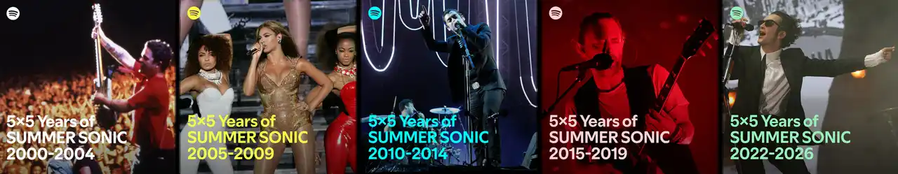 公式プレイリストとビデオポッドキャストでサマソニ25年の歴史を振り返るSpotify限定コンテンツ「5x5 Years of SUMMER SONIC」も本日公開 |