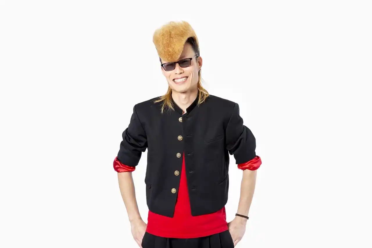 リーゼントが特徴的なヤンキー芸人として活動中。特技は子供をあやすこと。 |