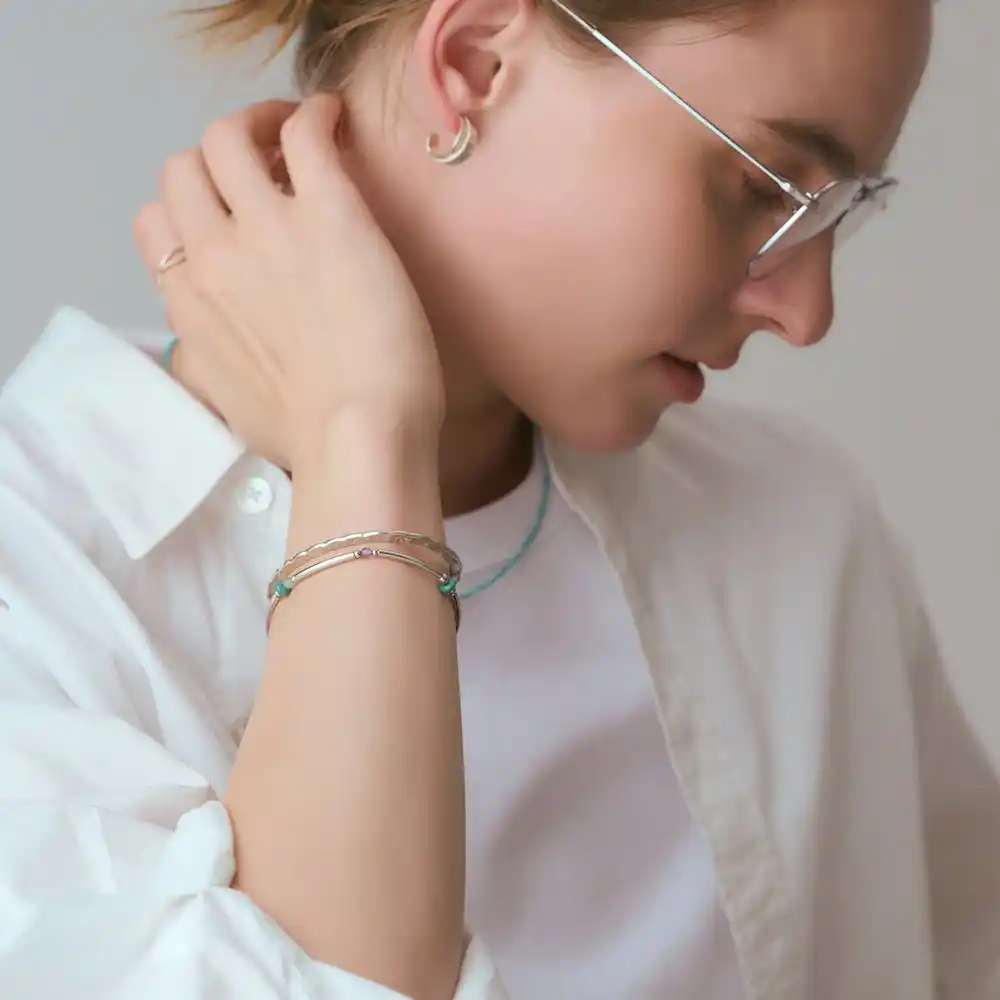 カラーストーンの持つ表情と繊細なデザインを楽しめるブレスレットやバングルが登場しました。 手元に自然な彩りを添え、日常のスタイリングにさりげないアクセントを与えてくれるアイテムです。 |