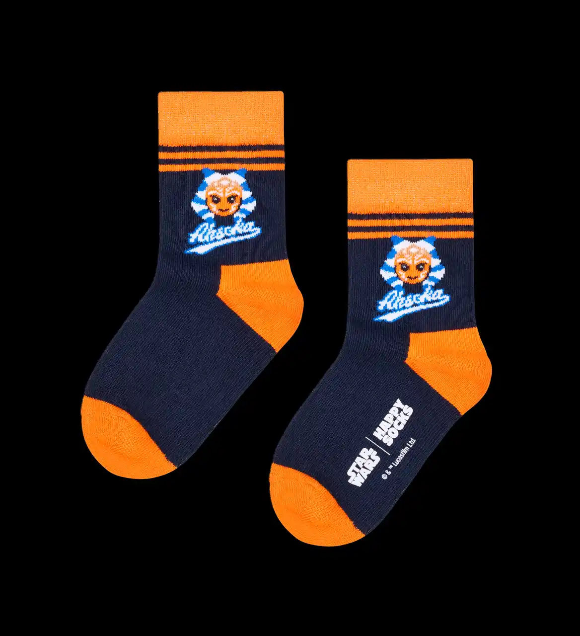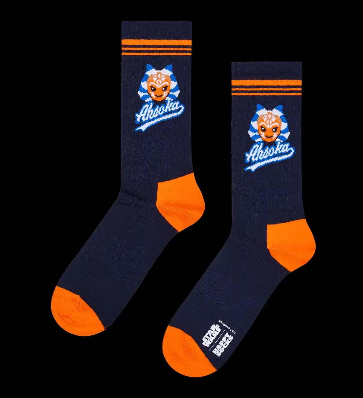 アクティブなシーンにぴったりのスポーツソックス。グローグーへの愛をストレートに伝える「アイハートグローグー」は、サイドのハートマークがアクセントになるキュートな一足です。元ジェダイ、アソーカ・タノにインスパイアされた「アソーカ」は、彼女を象徴するカラーリングでスタイリッシュに表現。さらにバウンティハンター、ディン・ジャリンを描いた「マンドー」は、クールなシルバーのヘルメットが足元のポイントになります。 |
