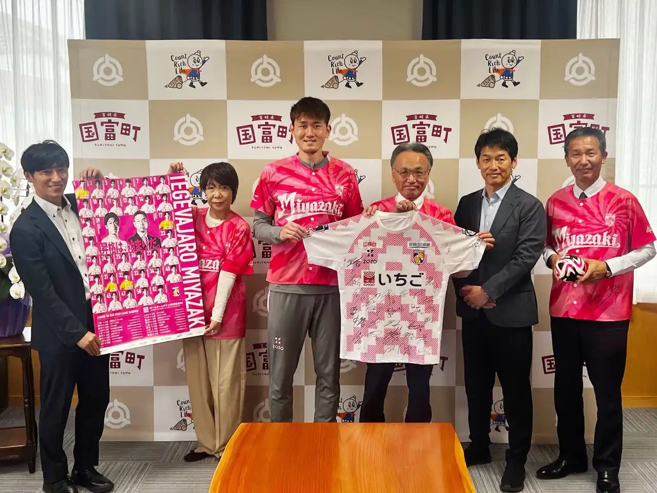 宮崎県国富町(町長:日高 利夫)は、包括連携協定を結ぶプロサッカークラブ運営法人株式会社テゲバジャーロ宮崎(代表取締役会長:石原 実、代表取締役社長:宮本 功)のJ2昇格を祝し、地域一丸となった応援活動を推進しています。 |