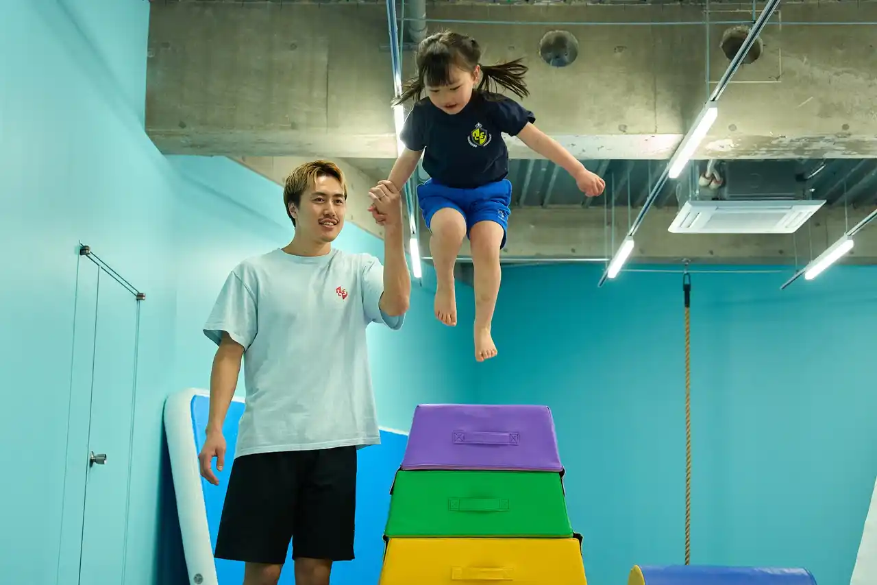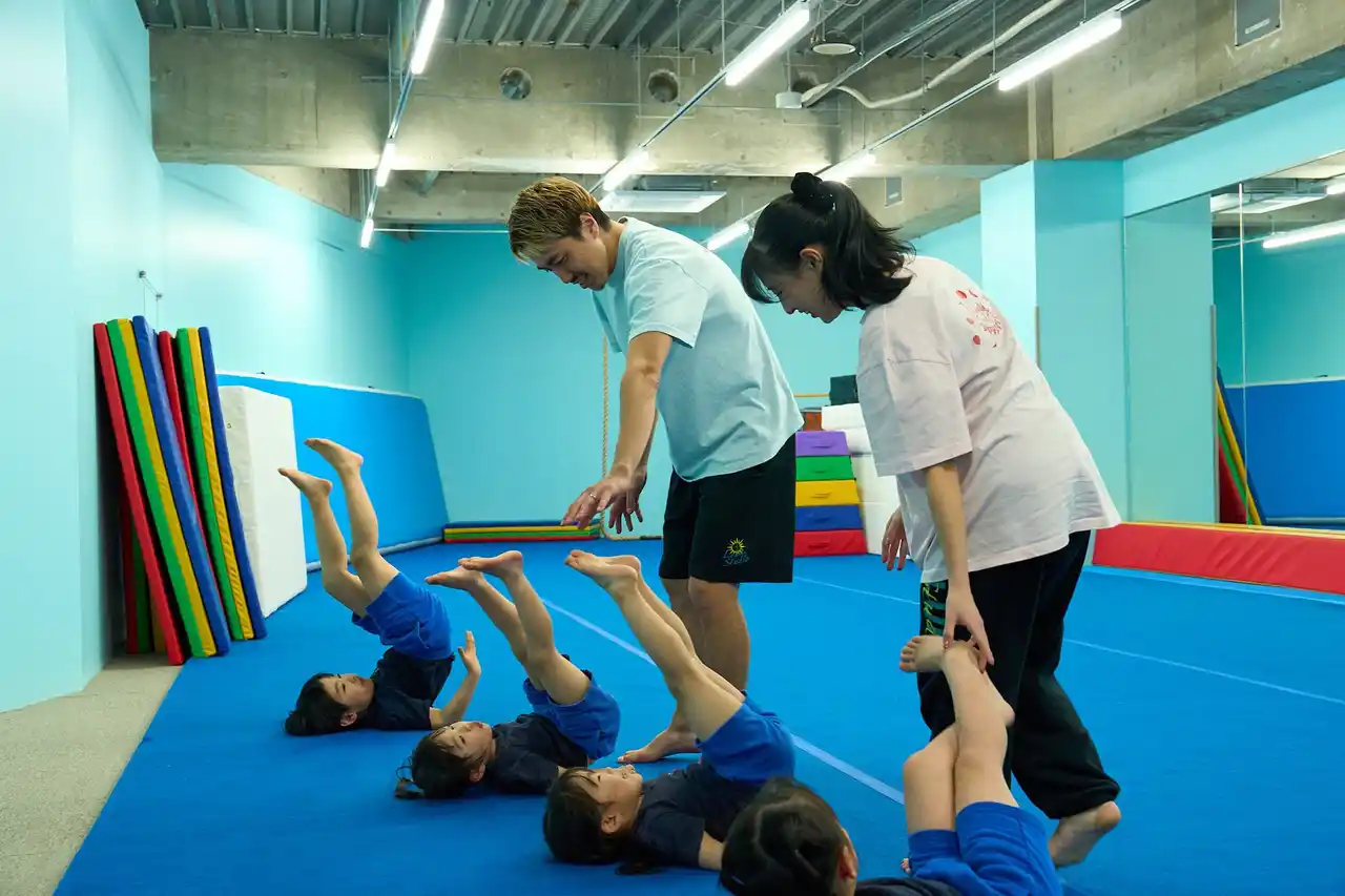 バク転やバク宙といった高度な技にも挑戦する機会を設け、子どもたちの運動能力を向上させるとともに、挑戦意識を育みます。安全な補助法や確かな指導法は、徹底した社内研修を通じて習得し、安心して挑戦できる環境を提供しています。 |