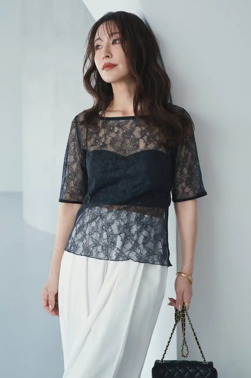 繊細な細糸で描かれた、センシュアルな表情の総レースカットソー。 |