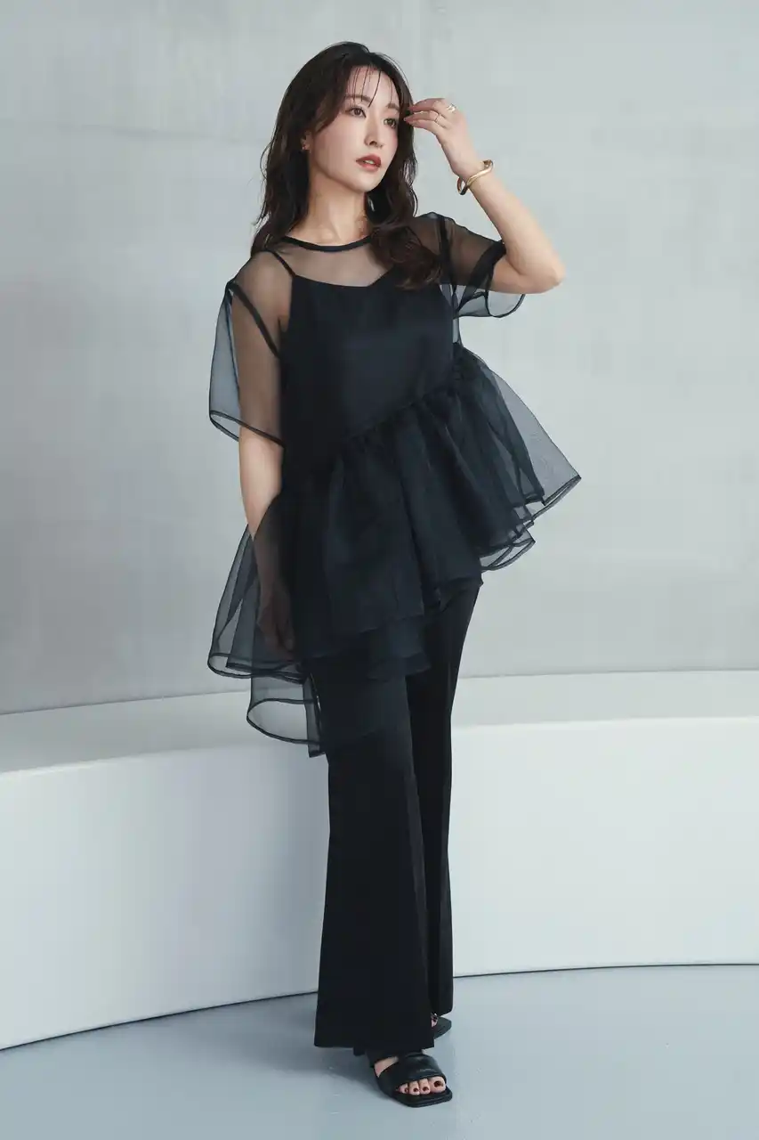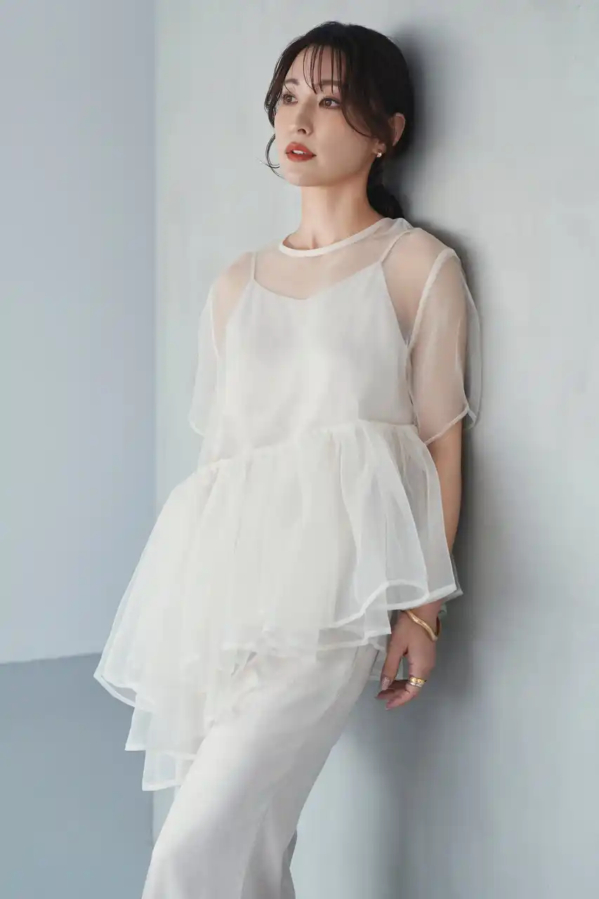 シアーのペプラムブラウスとキャミソールのセットアイテム。 |