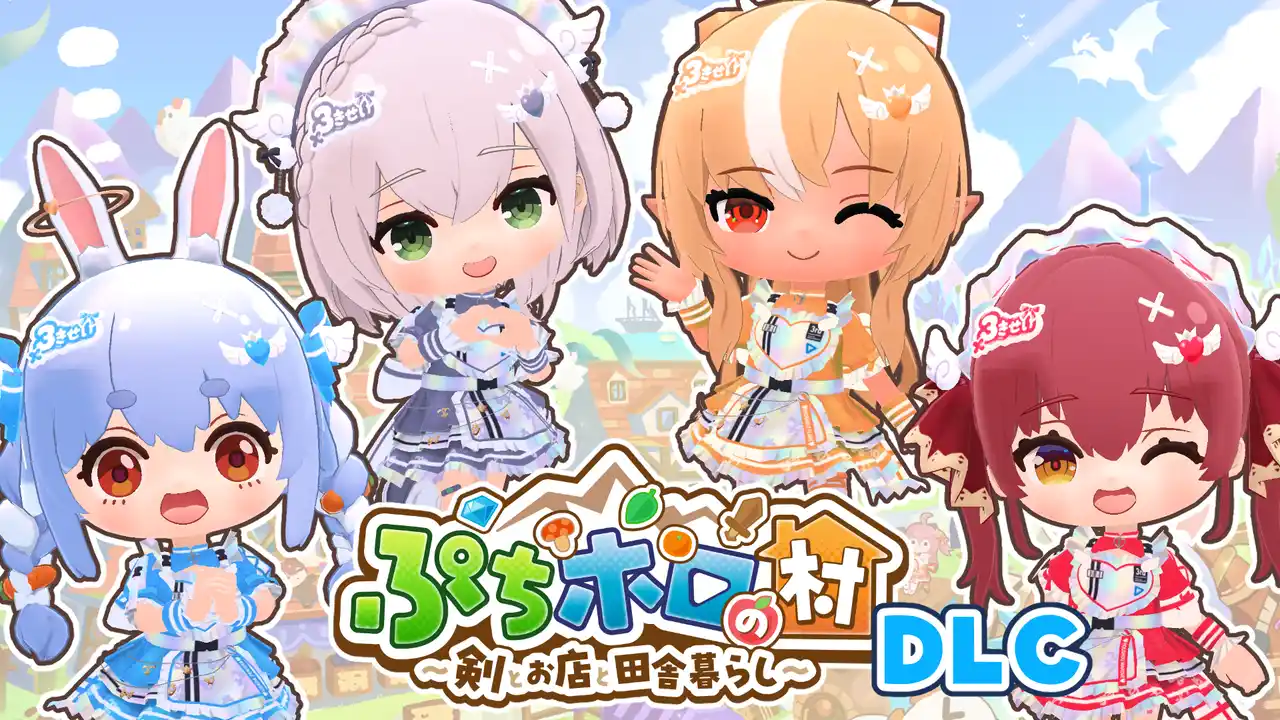 あわせて、本作内の着せ替え機能で使用できるダウンロードコンテンツ(DLC)「ぷちホロの村 DLC - 3期生ライブ衣装セット」も同時に発売することをお知らせいたします。