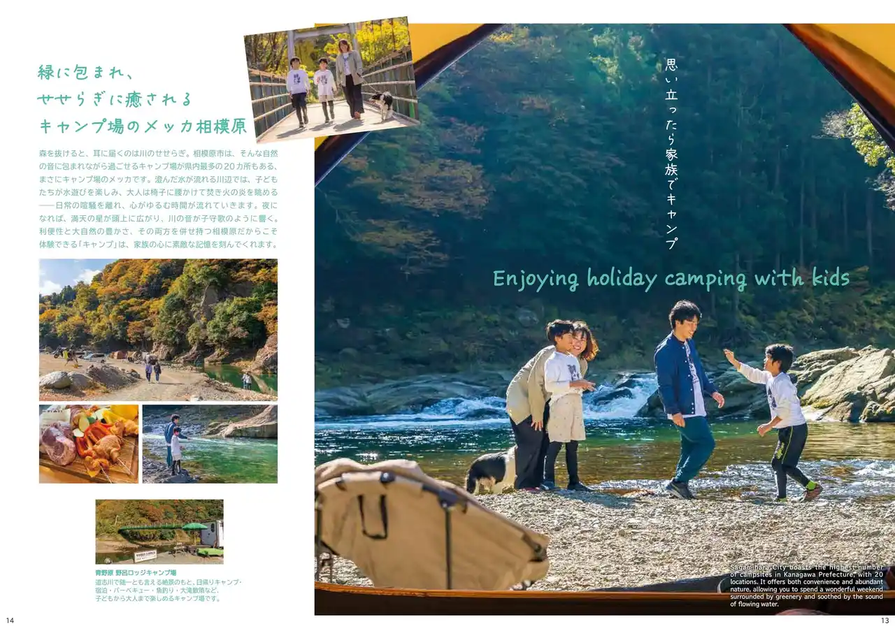 宇宙を身近に感じられる各種施設、子育てファミリーにぴったりな公園やキャンプ場を始めとする豊かな自然など、相模原市の魅力を親子の笑顔と共に紹介しています。 |