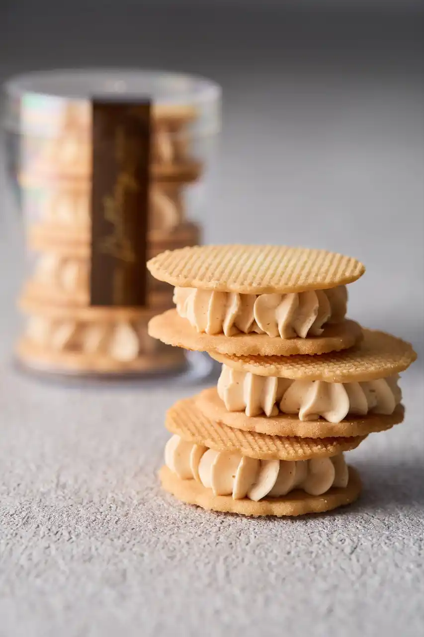 このたび4月に発売となったのは、新商品の『バタリーサンド(塩キャラメル)』です。北海道バターにコクのあるキャラメルをあわせた特製クリーム&とろりと濃厚なキャラメルを、薄めに焼き上げたクッキーで挟みました。サクサク食感と、クリームにぱらりとふりかけたゲランドの塩味が癖になる一品です。透明のケースに入った可愛い見た目は、ちょっとしたプレゼントにもぴったり。 |