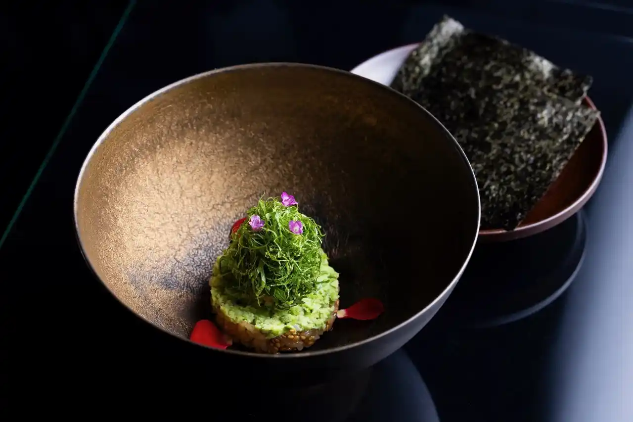 Vegan Ramen UZU Kyotoでは、ウェルカムドリンクからデザートまで、全てをヴィーガン料理で構成したコース「UZU Signature Course」を提供。 |