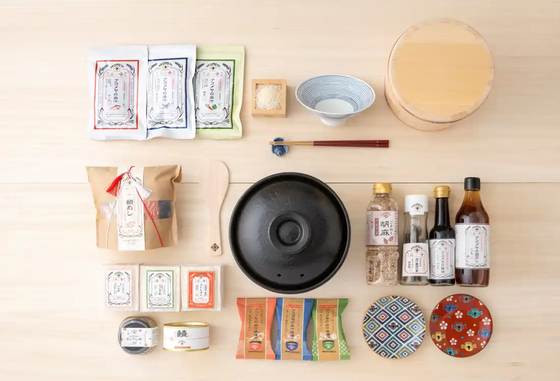全国各地から厳選したさまざまな種類のお米を中心に、ごはんのお供や和食の中心にある出汁や調味料、食器・調理道具などを展開します。 |