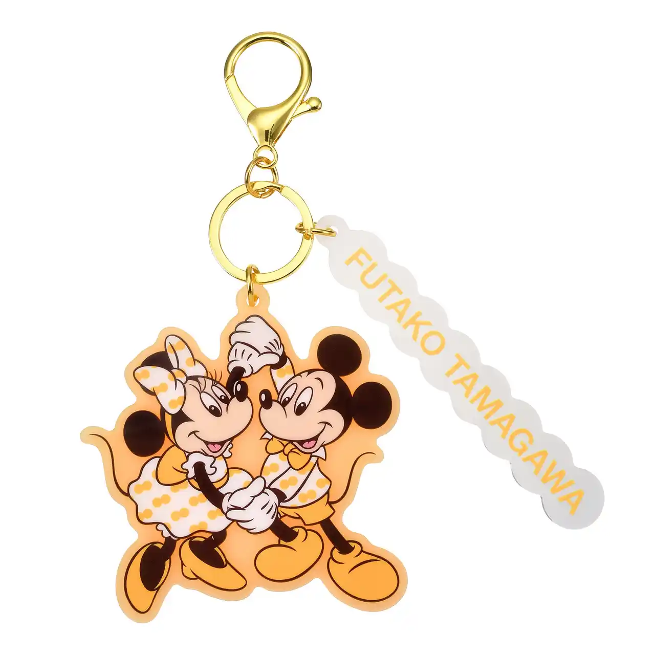 グランドオープンを記念して、全11種類の二子玉川ライズ S.C.店限定アイテムを発売します。ミッキーマウスとミニーマウスが黄色と白を基調としたコスチュームに身を包んだ華やかなアートです。鮮やかなビーズストラップがアクセントのぬいぐるみキーチェーンをはじめ、“FUTAKO TAMAGAWA”の文字がポイントのキーチェーンやトートバッグ、ショッピングバッグなど、限定感のあるアイテムが登場します。 |