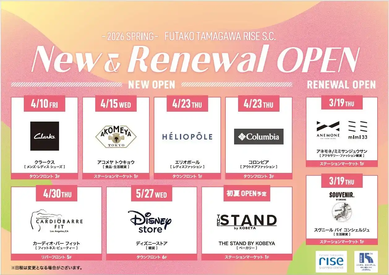 今年、開業15周年を迎えた二子玉川ライズ・ショッピングセンター(以下、「二子玉川ライズ S.C.」、東京都世田谷区、総支配人 大木さゆみ)では、2026年春、新店舗のオープンおよび既存店の店舗リニューアルを実施します。 |