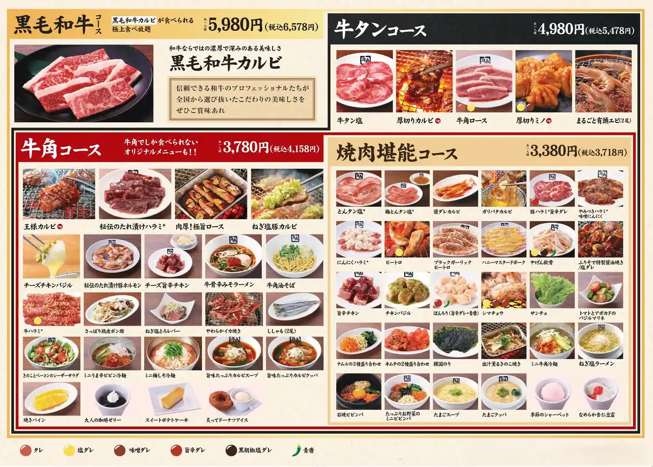 | 牛角の食べ放題5コースのご紹介 | |||||||||||||||||||