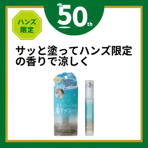 首筋や額に塗ることですっきり涼しくなるローションです。ロールオンスティックのため、コンパクトで持ち運びにも便利。清涼感と落ち着きのあるウッディマリンの香りはハンズ限定です。 |