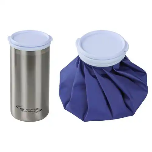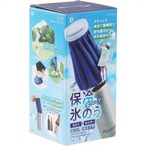 ケースと氷のうがセットになったアイテムです。ステンレスボトルは真空2層構造で、外出先でも氷のうを使うことができます。付属のシリコーンゴムをつければ、瓶などの保冷にも便利です。 |