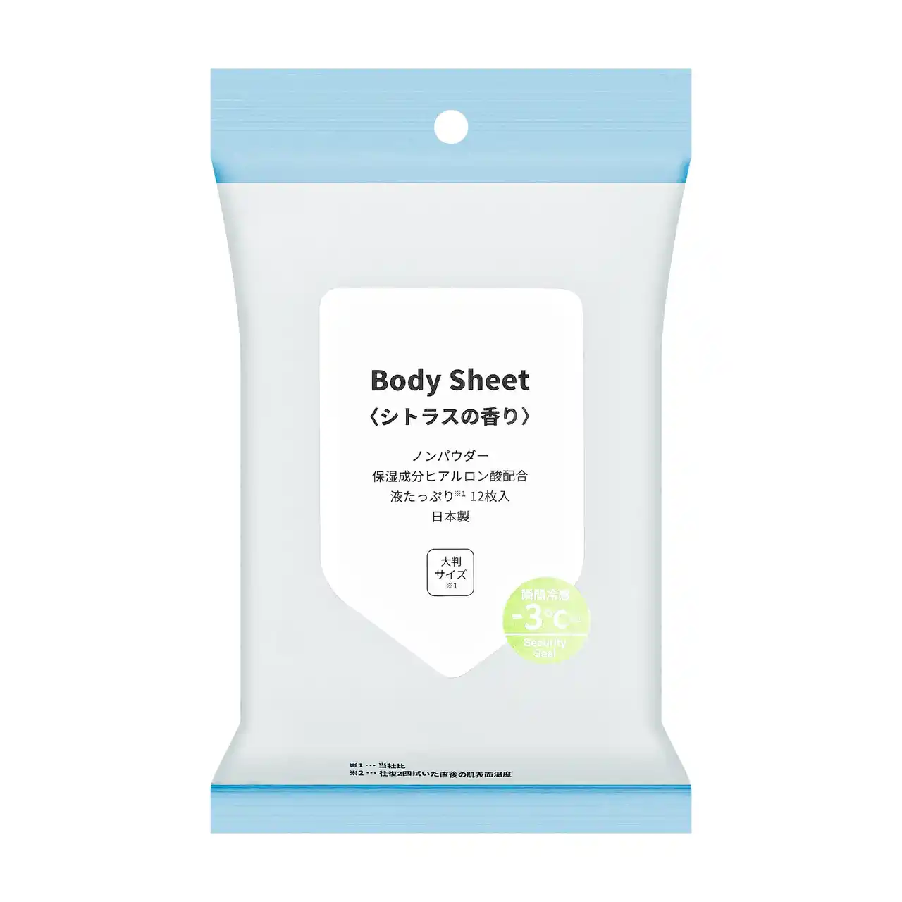 カバンに入れて持ち歩きやすいボディシートです。拭いた瞬間に-3℃の冷感で爽快感を感じられるうえ、大判シートのため1枚で全身をすっきりさせてくれます。ノンパウダータイプで使いやすく、保湿成分配合なのでお肌にも優しく便利です。 |