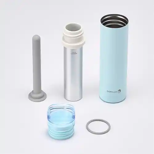氷のうが魔法瓶に入った商品です。内部の氷のう自体がアルミ素材のため、表面温度を約2度まで冷やすことができます。内部パーツを外せば保冷ボトルとしても使用可能です。※4月末頃順次発売予定 |