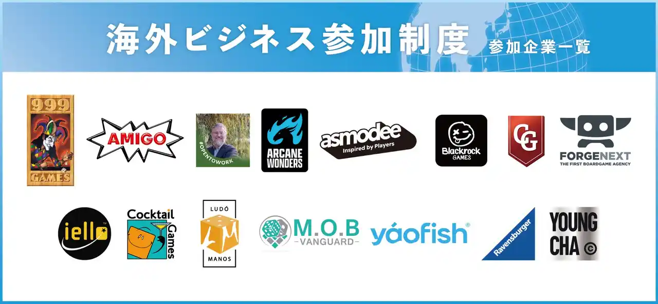 2025年春から実施の「海外ビジネス参加制度」には、前開催の倍となる15の世界的なメーカーとバイヤーのみなさまが参加を表明!世界でも注目を集める日本発のボードゲーム、その最先端を探し求め、積極的な商談が行われます。また、日本国外から45もの団体が出展に至り、会場では1大コーナーを形成しています。 |