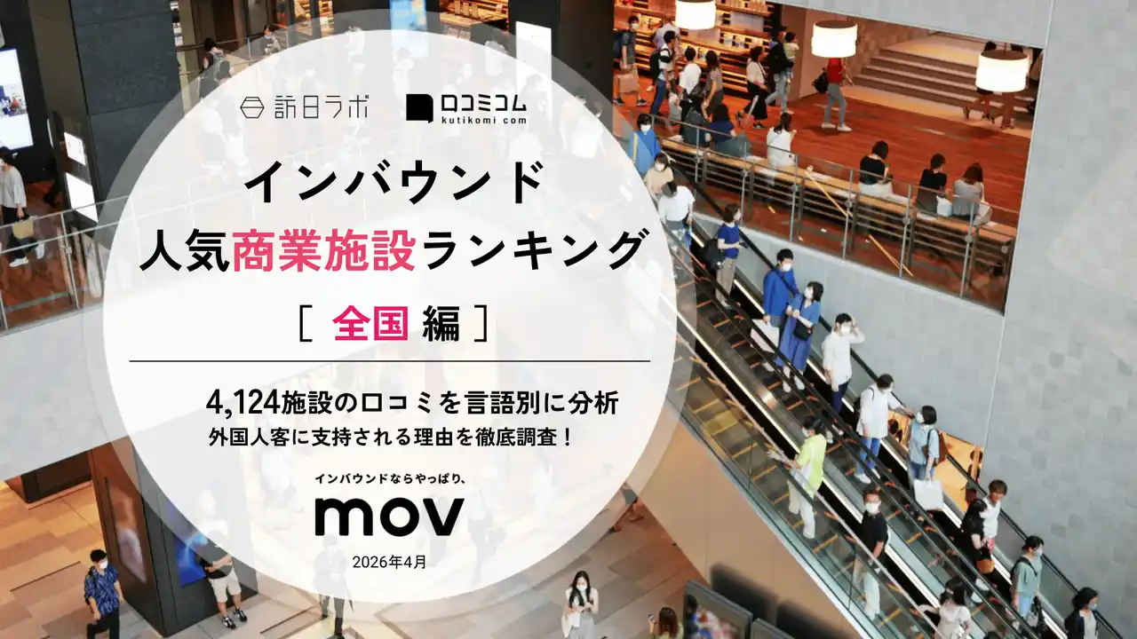 業界最大級のインバウンドビジネスメディア「訪日ラボ」及び 店舗向け集客一元化プラットフォーム「口コミコム」を運営する株式会社mov(代表取締役:渡邊 誠、本社:東京都渋谷区、以下mov)は、全国の商業施設に寄せられた最新の口コミデータから、独自の『インバウンド人気商業施設ランキング』を発表しました。 |