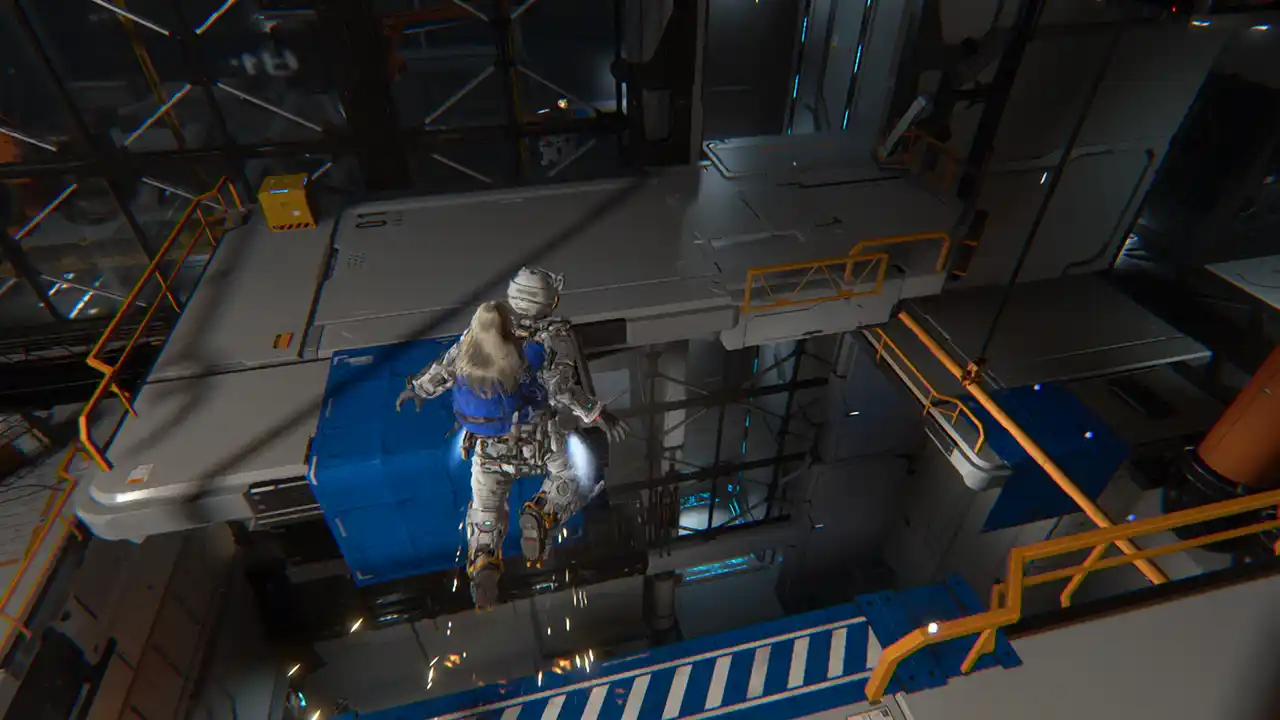 ヒューの宇宙服にスラスターが装備されている。立体的な移動が可能だ。 |