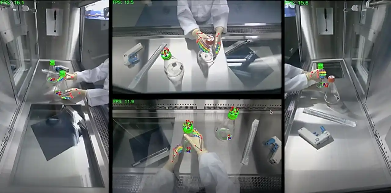 厳密な品質管理が求められる安全キャビネット内での無菌操作や、製造ラインなどの手作業の現場では、手順のわずかな違いが品質や安全に大きな影響を与えます。しかし、熟練者の経験や感覚に基づく作業ノウハウを、特定の人に依存せず共有することは容易ではありません。また、従来は人の目による確認が中心であったため、定量的な作業記録を蓄積することが難しく、問題発生時の事後検証が困難であることや、労働人口の減少に伴い、経験の浅い作業者が作業を担う場面が増えていることなども現場における課題となっています。 |