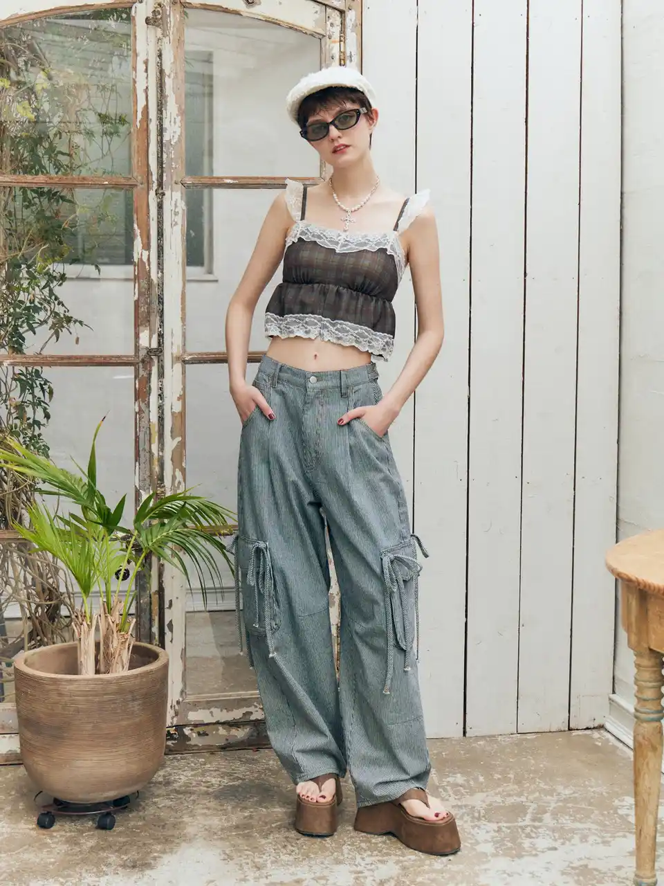 | 夏のコーディネートに映えるjouetieらしい柄と、そのまま街にも飛び出せるファッション性の高さが魅力です。ビーチシーンはもちろん、デニムやスカートと合わせたタウンスタイリングにも取り入れやすく、シーンを問わず活躍します。 | ||||||||||