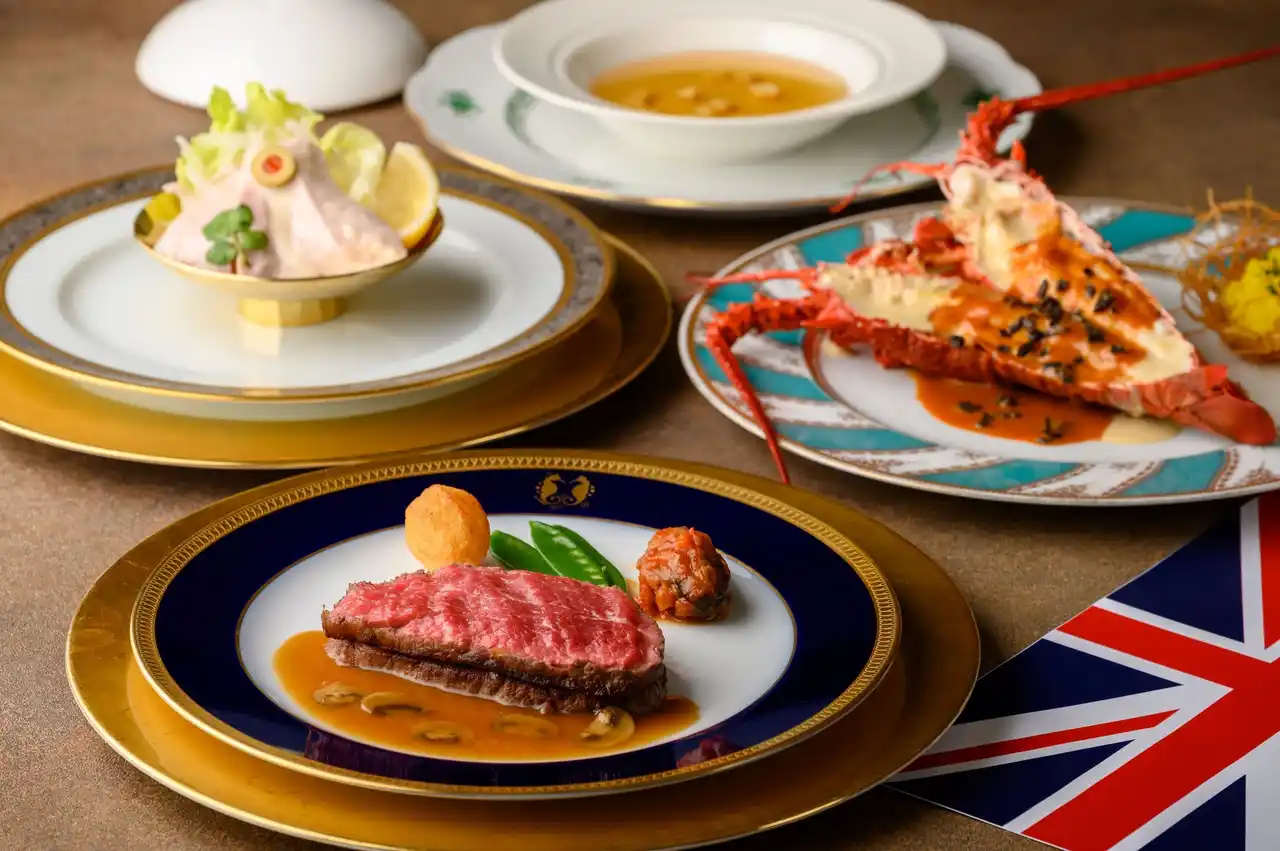 英国エリザベス2世女王陛下とフィリップ殿下をお迎えしたことを記念して、来泊時に召し上がったお料理、さらには英国らしい料理をご堪能いただけます。 |