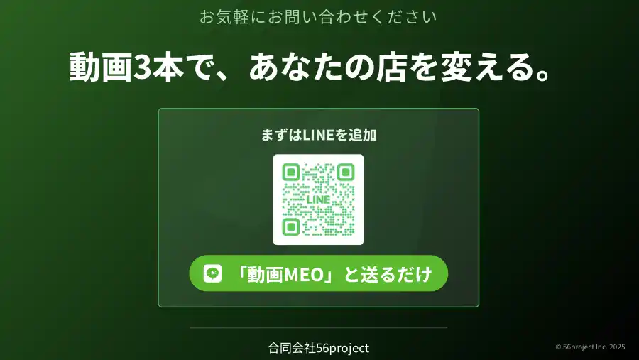 ※初月1ヶ月無料トライアルあり/いつでも解約可能 利用方法:LINE公式アカウント(@171tpezi)に友だち追加後、「動画MEO」と送信 |