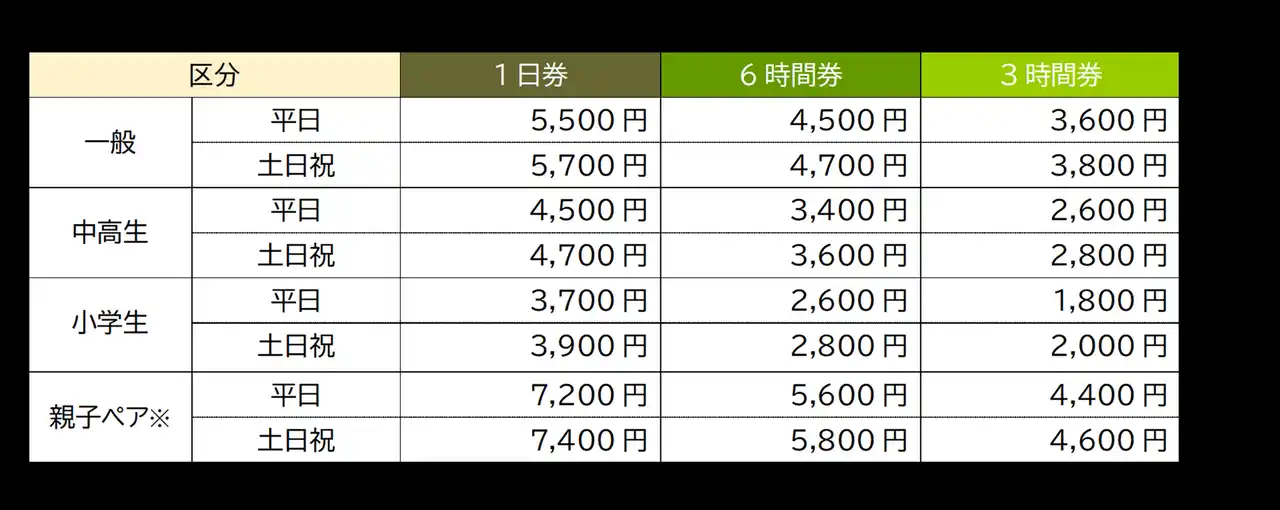 料金:土日祝日料金を適応し、1日券では最大13時間利用可能 |