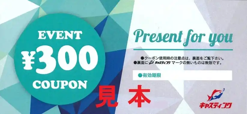 5.「釣具のキャスティング」全店舗で使用可能な300円割引クーポンを配布! |