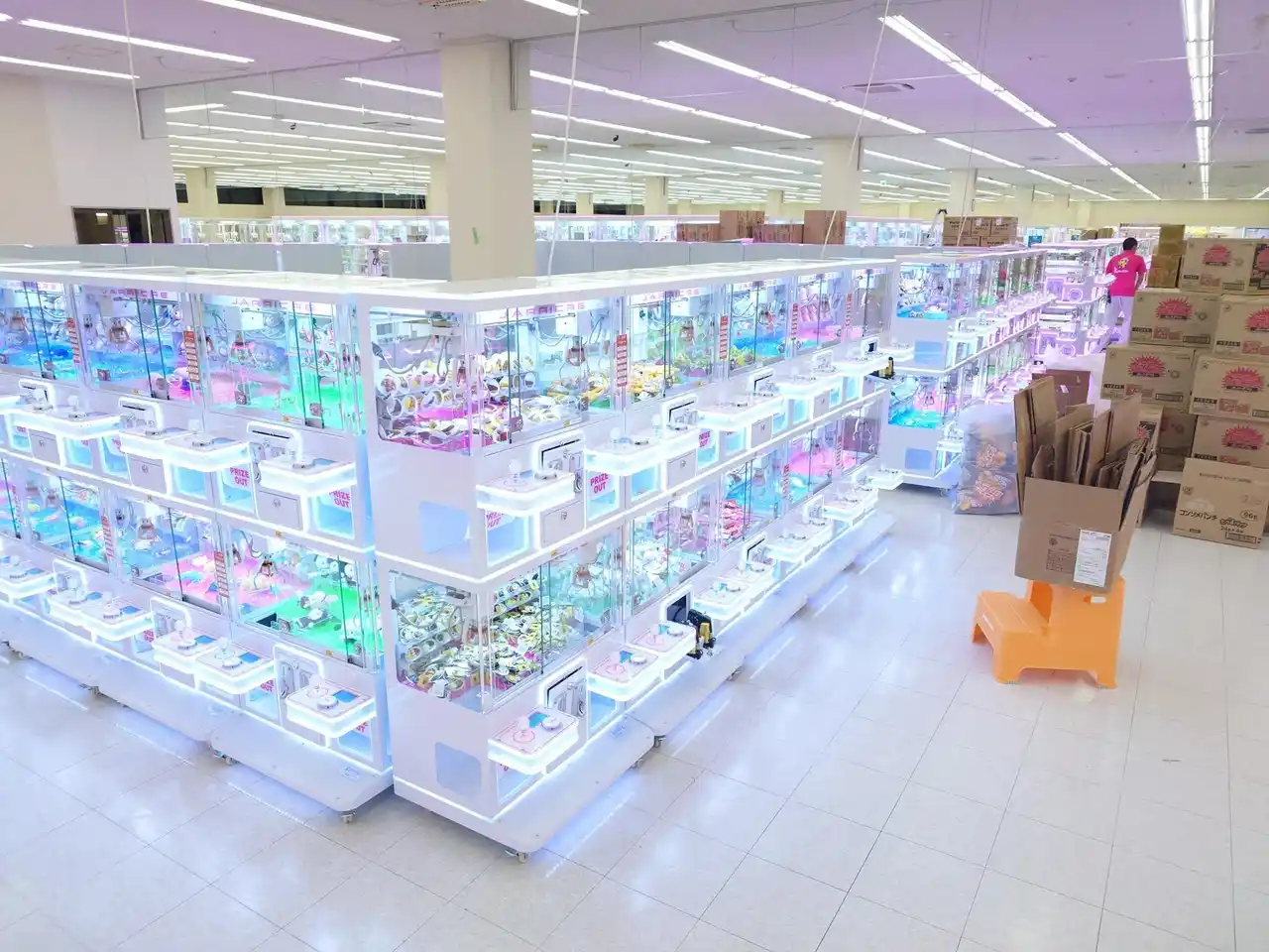地域最大級の設置台数: 約280台のクレーンゲーム機が並ぶ圧巻の光景。 |