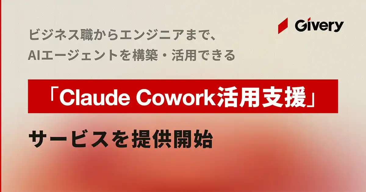 株式会社ギブリー(本社:東京都渋谷区、代表取締役社長:井手高志、以下 当社)は、ビジネス職からエンジニアまで、AIエージェントを業務に実装できる「Claude Cowork」および「Claude Code」の導入・活用を支援する「Claude Cowork活用支援」サービスの提供を開始しました。 |