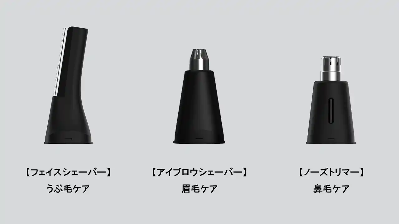 2.3種類の付け替え可能なアタッチメント(刃)で繊細な調整ができ、1本でフェイスシェーバー(うぶ毛ケア)・アイブロウシェーバー(眉毛ケア)・ノーズトリマー(鼻毛ケア)の3役をこなします。 |