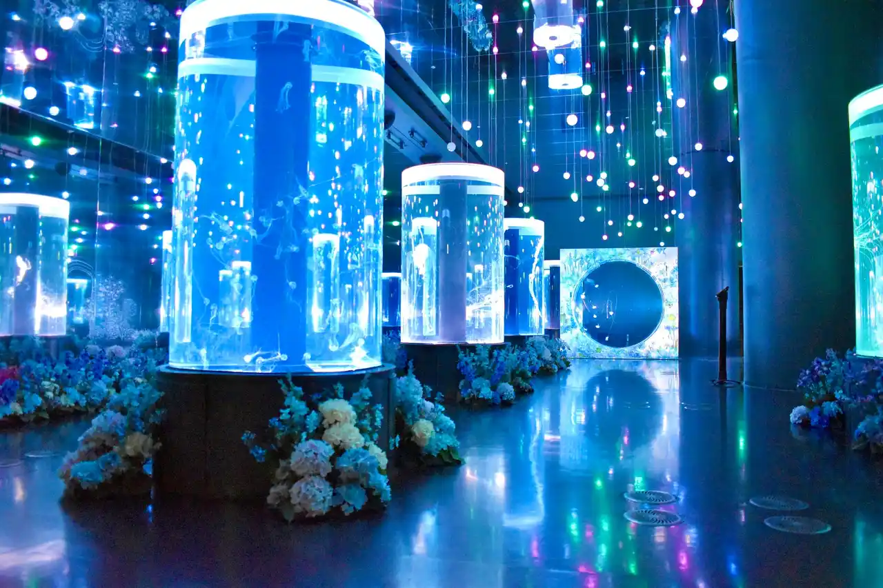 | 『マクセル アクアパーク品川』(所在地:東京都港区高輪4-10-30 品川プリンスホテル内、館長:阿久津恵)は、2026年4月25日(土)~6月28日(日)の期間、『株式会社日比谷花壇(以下、日比谷花壇)』とのコラボレーションを実施します。クラゲ展示エリア「ジェリーフィッシュランブル」では、ホワイトやブルーを基調とした涼やかなライティングの中、ゆらゆら漂うクラゲと初夏の花々が織りなす癒しの空間をお楽しみいただけます。装飾には、クラゲと親和性のある花々を選出。それぞれの特徴を掛け合わせて生まれる新たな魅力を通じて、その美しさをより深く体感いただけます。 | ||||||||||