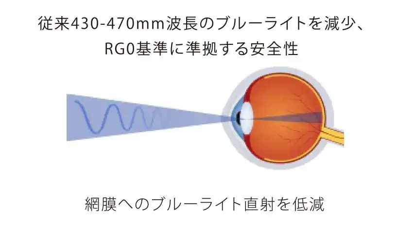 最高レベルの安全基準「TUV RG0」に準拠し、目への刺激を最小限に抑えます。 |