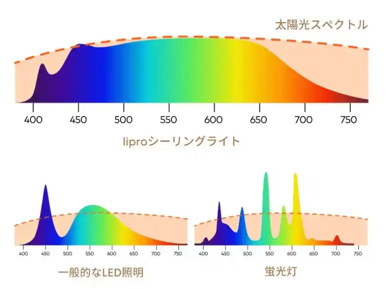 夜間の強い光は睡眠ホルモンの分泌を抑制しますが、世界500万台の実績を持つ「lipro」は、独自の太陽光再現技術で自然なリズムを室内で再現。ブルーライトリスクゼロ(RG0)設計により、「照明を替えるだけ」という手軽さで現代人の不調を根本からサポートします。 |