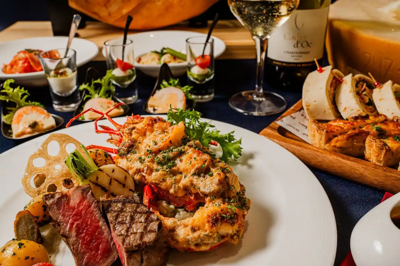 肉の旨みを堪能できるアンガス牛サーロインのグリルと濃厚なテルミドール仕立てのフランス産ロブスターを一皿に。特別な日にふさわしい、贅沢なダブルメインです。 |
