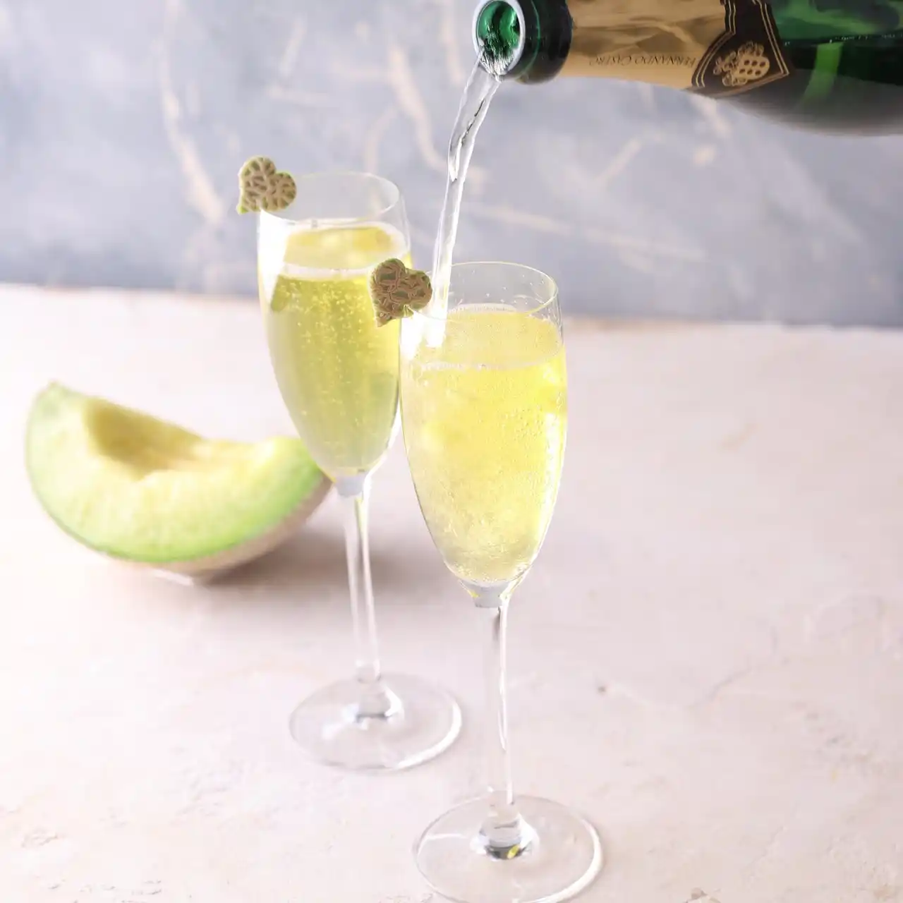マスクメロンの果汁を搾り、辛口のスパークリングワインを注いでさっぱりと仕上げました。 |